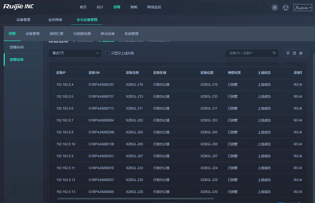 设备的快速配置与调试,也是考验产品方案能否保证网络及时连通的重要环节。如果按照传统方式,所有入室设备都需要手工配置、上线、测试,以行政楼119间房间计算,需要耗费大量的时间和人力,上线时间无法保证。