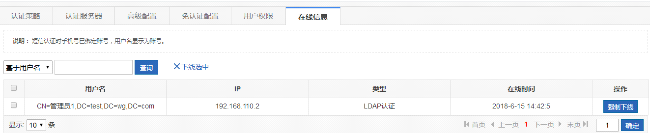 注:AD域用户完成认证后,用户名显示为完整的DN(Distinguish Name)名