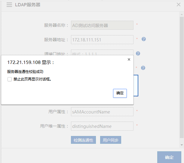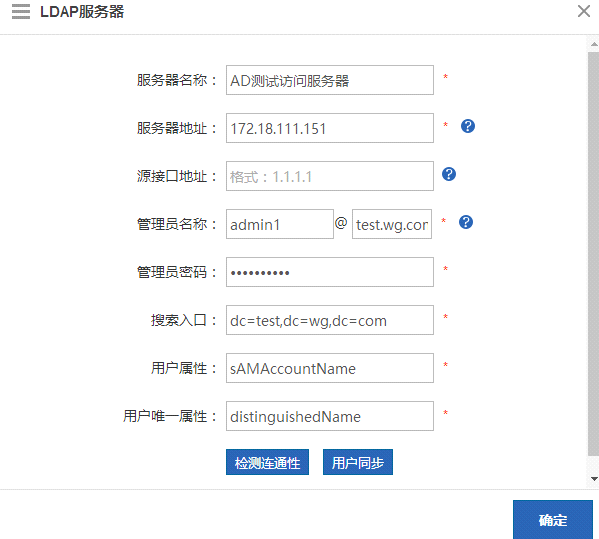 • 源接口地址:如果NAS设备同时作为VPN客户端,需要通过VPN隧道访问AD服务器时,需要配置该接口地址。